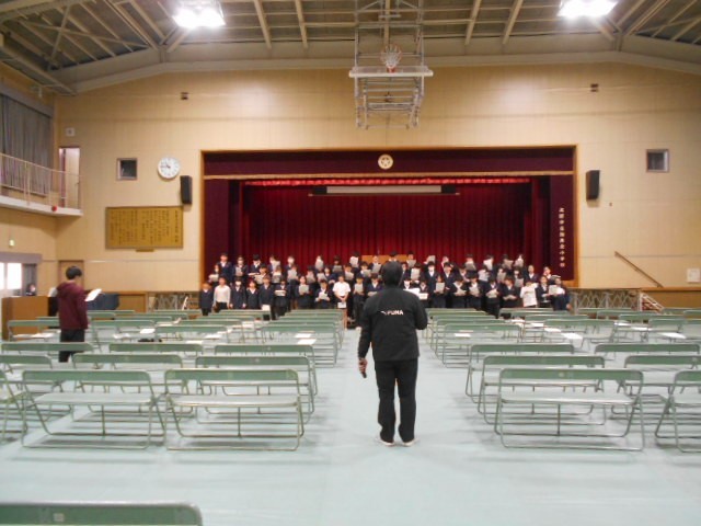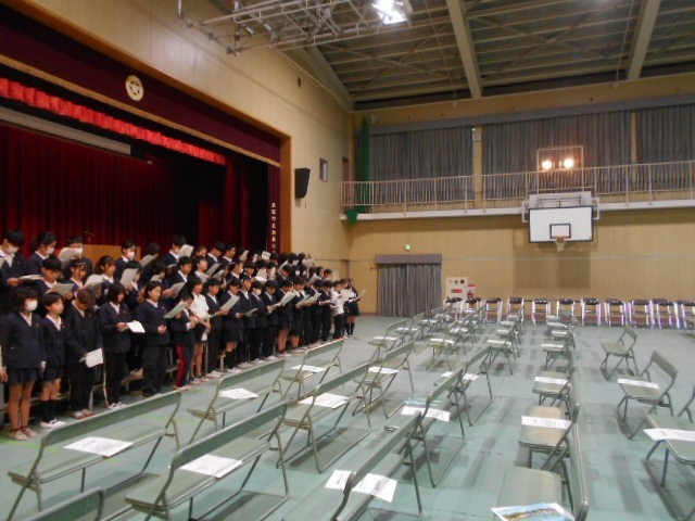 卒業式の呼びかけの練習をしています。