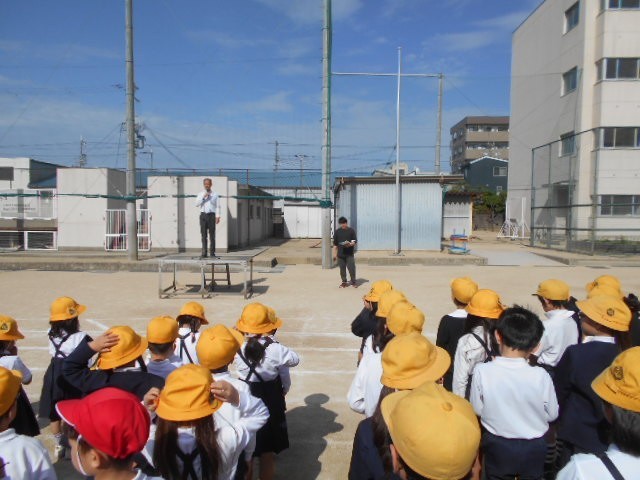 水分をしっかりと補給して体調管理につとめましょう。1年生には入学式で「あいさつをしましょう。」という