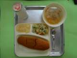 今日の献立は、黒糖パン、帆立貝のグラタン、スープ、和なし(缶詰)、牛乳です。 ...