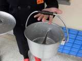 給食室での調理の様子と「給食週間」「のこさず食べよう週間」のお知らせです。