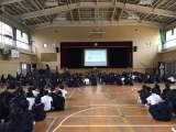 今日は体育館で、給食委員会の発表がありました。 クイズや歌を通して、給食の工夫や...