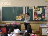 栄養教諭の先生も授業に参加しています。 「サラダ」って給食のサラダも同じかな」...
