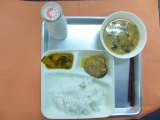 今日の献立は、ご飯、和風おろしハンバーグ、みそ汁、かぼちゃのいとこ煮、牛乳です...