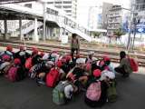 秋の遠足は、大阪城公園に行きました。 電車の中のマナーも、よくできていました。