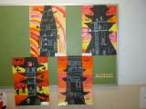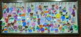 玄関の掲示板です。かわいい手袋の中に動物たちが・・・・ 1年生の作品です。
