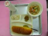 今日の献立は、パンプキンパン、たこボール、洋風煮、大根のサラダ、牛乳です。 ...