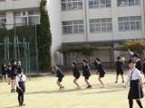 一人で跳んでいる子どもやグループで跳んでいる子どもがいます。
