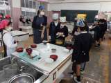 作ったスイートポテトを1年生に届けます。お兄ちゃん・お姉ちゃんの顔ですね。