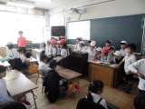 ルールを説明している2年生、聞いている1年生、楽しい雰囲気です。