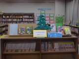 12月の図書館の様子です。読書の木は、葉でいっぱい! クリスマスの掲示も・・・