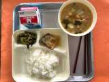今日の献立は、「ごはん・牛乳・さばのみぞれかけ・みそ汁・こまつなの煮びたし」です...