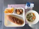 14日の献立は「とうふのミートグラタン・押麦と野菜のスープ煮・デコポン・おさつパ...