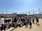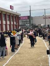 2023.3.17 教室から卒業生が 運動場に降りてきました。 最後の花道は...