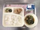 献立は「鶏肉のからあげ・中華スープ・チンゲンサイともやしの甘酢あえ・ごはん・牛乳...