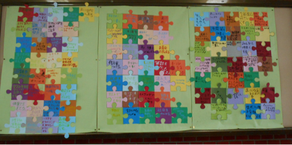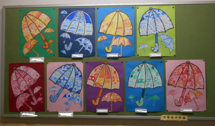 3年生の掲示板は、美しい色とりどりの傘が・・・