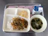 献立は「和風カレー丼・すまし汁・和なし(缶)・牛乳」です。 和風カレー丼は、だし...