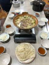 夕食(かも鍋) 林間学習最期の夕食です。準備や片づけも上手になりました。うどんも...
