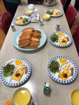 朝食の様子です。2日目になり食事班のまとまりも出てきました。