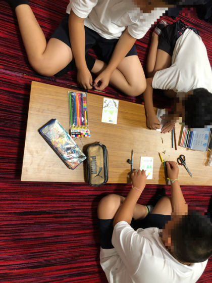 パウチクラフト。紙に描いた絵に採取した植物をアレンジしてパウチングします。2日間...