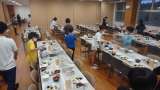 食事係が配膳してくれています。朝食の後は活動用のお茶をいれてもらった水筒を受け取...