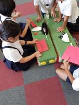 2年生と4年生 2年生が運動会で使用する帽子づくりをしました。 2年生に...