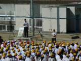 講堂の練習後、運動場で仕上げの練習です。