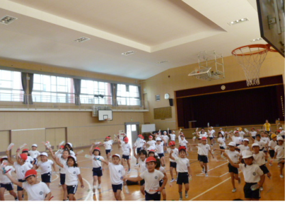 まず、講堂でダンスの練習をしました。 音楽にのって、楽しそうに体を動かしていま...