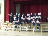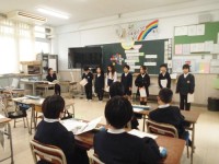 学習参観に向けて合唱と合奏の練習をしています。1組が学級休業のため、6年生の学...
