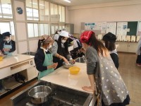 家庭科の調理実習で「白玉団子」を作りました。みんなで協力して白玉粉をこね、丸め...