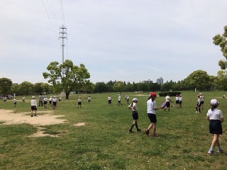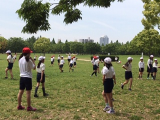 今日は、少し暑いぐらいの天気でしたので、時々休憩しながら、ふえおにやドッヂビー、ボール遊びをしていました。