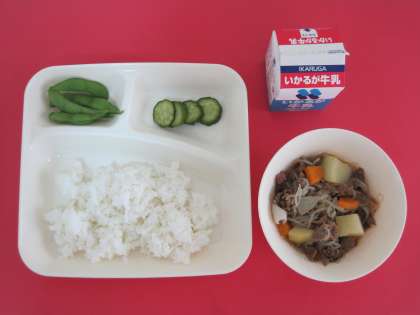 牛肉、じゃがいも、糸こんにゃく、たまねぎ、にんじんを使った