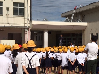 今日の児童朝会は、C-NETの先生の紹介と、空手、ソフトボールの表彰がありました。
