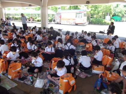 暑い中、楽しく園内を見て回って、みんなのおなかはぺこぺこでした。