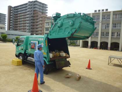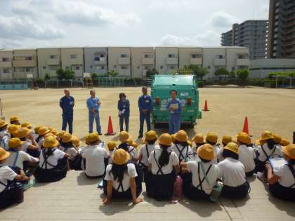 今日の2・3時間目、東南環境事業センターの方々によるゴミの分別やパッカー車についての学習をしました。パッカー車に試乗したり、ごみの分別ゲームをしたり、子供たちは意欲的に活動していました。