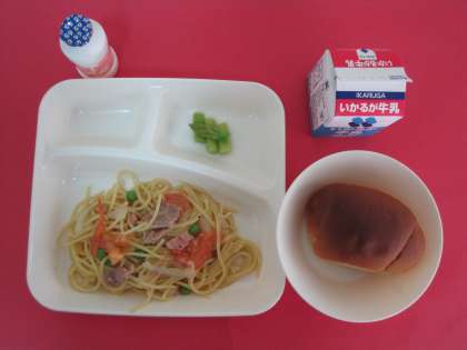 グリーンアスパラガスを使ったサラダと発酵乳です。