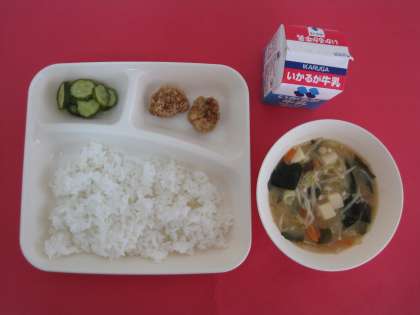 とうふ、キャベツ、もやし、にんじん、えのきたけ、わかめを使ったみ