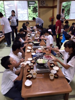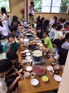今日は、牛鍋です。食べた後は、みんな楽しみ!?の、ナイトハイクに行きます。