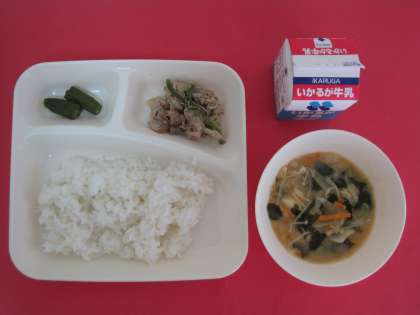 とうふ、キャベツ、にんじん、えのきたけ、わかめを使ったみそ汁