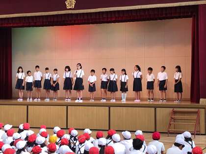 後期の運営役員、学級代表があいさつをしました。「あいさつ運動では大きな声で頑張ります」「出戸フェスタは楽しい思い出ができるように考えます」など、元気よくあいさつしてくれました。後期の出戸小学校をよろしくお願いします。