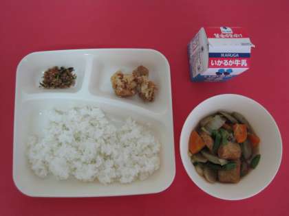 使った煮ものとかつおぶし、だいこん葉、いりごまを使ったおかかな