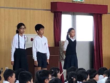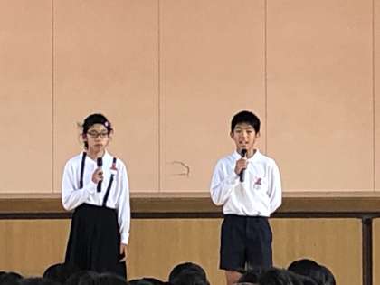 閉会式の様子です。6年生の児童会の子が、お店で遊んだ感想を言ってくれました。