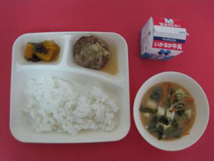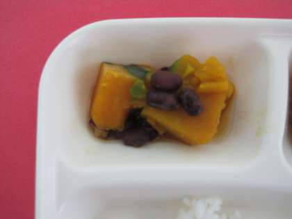 たみそ汁とかぼちゃとあずきを一緒に煮たかぼちゃのいとこ煮です。
