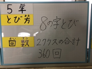 今日の大なわ練習では、2クラスで合計目標の360回を越えることができました。