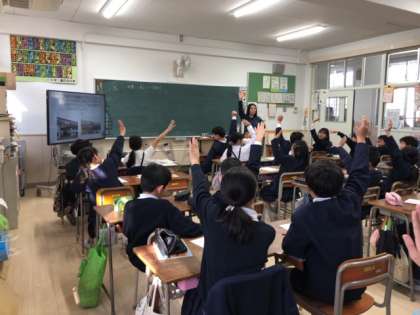 5年生は社会科で、「世界遺産を知ろう」をクイズ形式で学習しました。