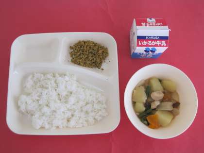 鶏肉、じゃがいも、たまねぎ、にんじん、さんどまめ、しいたけを使った和風の煮ものです。