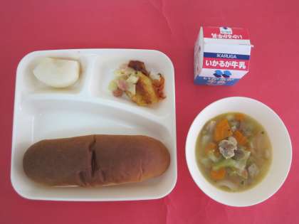 ベーコン、じゃがいもに塩、こしょうで下味をつけ、トマトと一緒にミニバットに入れ、チーズをのせて焼きました。それと二十世紀なしです。予定では豊水なしでしたが、数かそろえられなくて、変更になりました。