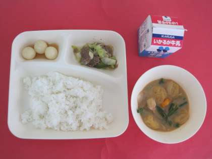 今日は、月見の行事献立です。さといもやだんごを使った献立になっています。