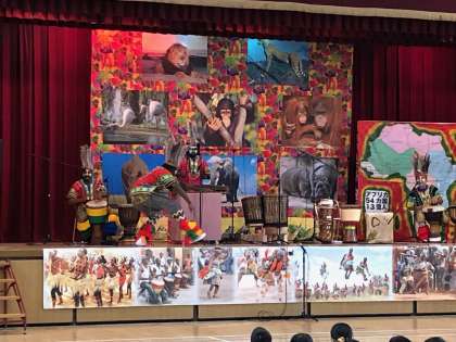 10月17日は土曜授業でした。株式会社日本芸術教育振興会の方が来てくださり、「アフリカンミュージックJOYコンサート」でした。