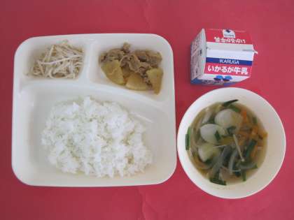 豚肉に料理酒で下味をつけ、油でいため、さらにだいこんを加えていため、砂糖、濃口しょうゆ、コチジャンで味つけしました。