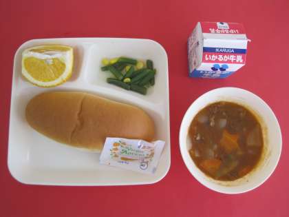 牛肉、じゃがいも、たまねぎ、にんじん、グリンピースを使ったビーフシチューです。小麦粉と綿実油でルウを作ってとろみをつけました。